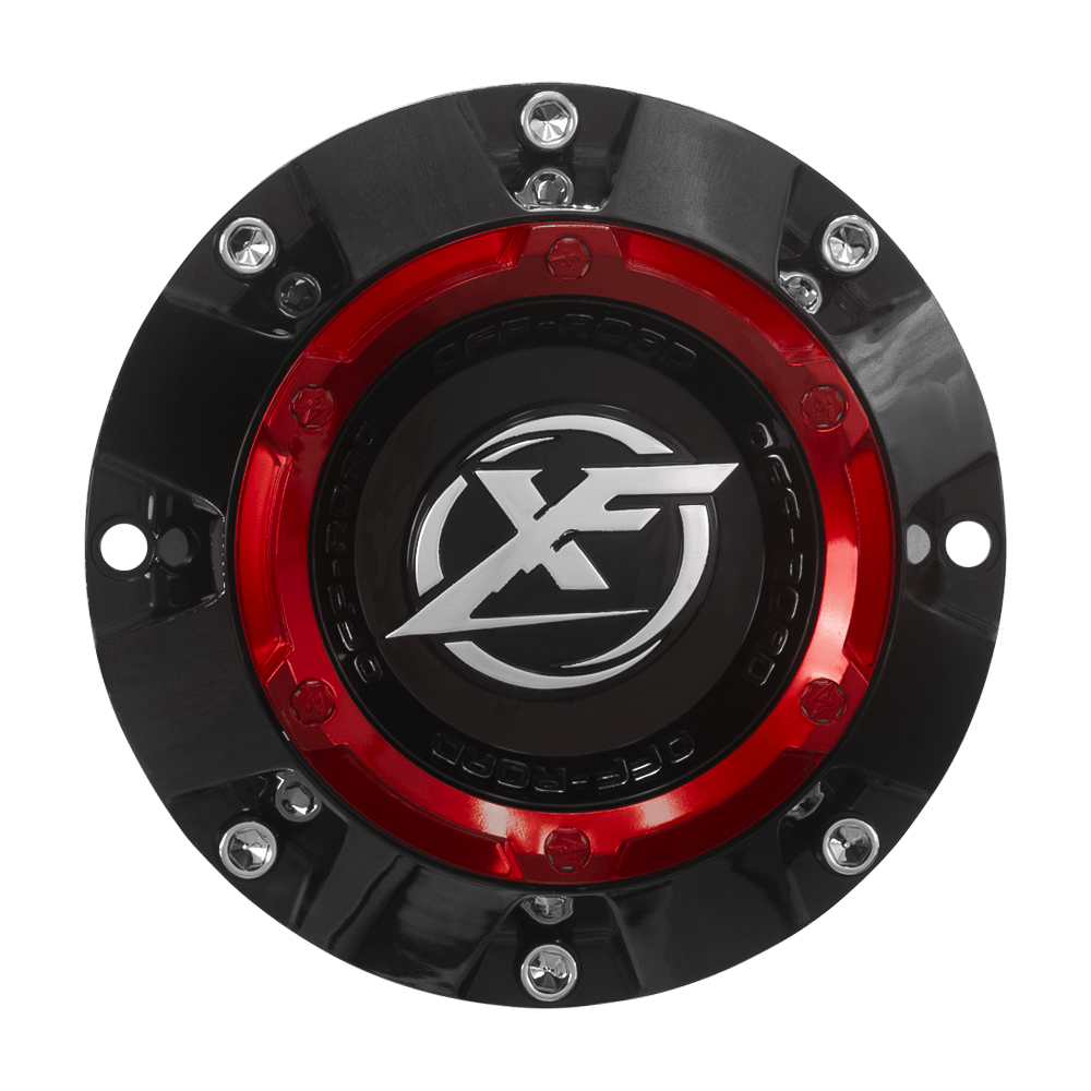 XF-220, XF-222, XF-224 Cap Red For Gloss Black Red milled 20x12, 22", 8x lug wheel.